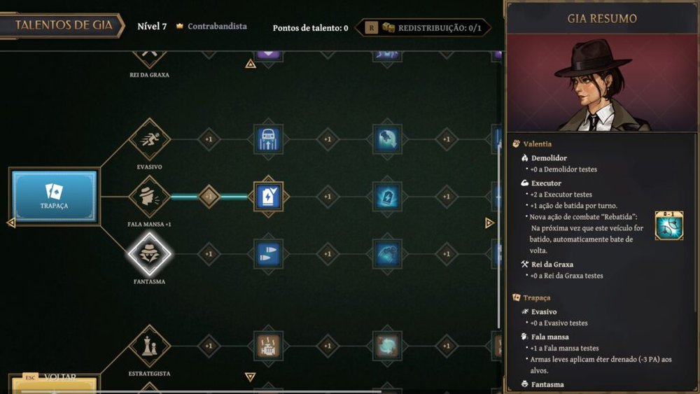 A progressão de personagem unifica habilidades sociais e de combate em uma única árvore de talentos, uma escolha de design que gera dilemas constantes. Optar por aumentar a proficiência em armas automáticas significa abdicar, momentaneamente, da capacidade de detectar mentiras em conversas cruciais. Essa interdependência força o jogador a especializar Gia ou a confiar nas habilidades específicas de seus companheiros de equipe, que trazem bônus passivos quando presentes no grupo. Confesso que de início, esse sistema me causou uma certa confusão devido à sobreposição de talentos, mas com o tempo, fui recompensado com o planejamento a longo prazo e a sinergia entre os tripulantes dos veículos.