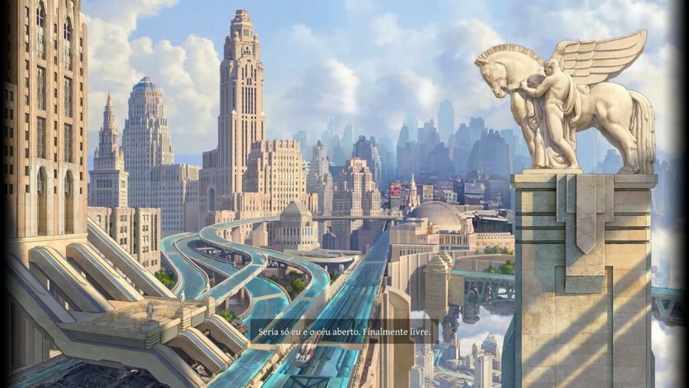 A ambientação pertence ao subgênero decopunk, uma estética que celebra a opulência dos anos 1930 enquanto a funde com uma tecnologia retrofuturista movida pelo Éter. Essa substância química milagrosa permitiu à humanidade erguer cidades inteiras rumo aos céus, mas o custo social revela-se em cada esquina de metal e ferrugem. O cenário consiste em uma colcha de retalhos de elegância e podridão. De um lado, temos os Barões, a elite que vive em torres Art Déco que brilham sob um sol eterno. Do outro, os “Ratos do Éter”, engenheiros e operários confinados nos poços tecnológicos sombrios, responsáveis por manter as engrenagens da metrópole em funcionamento enquanto respiram os resíduos tóxicos da prosperidade alheia.