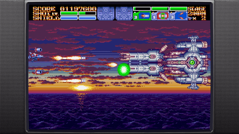 A trilha sonora, composta por Koshiro, é um dos pilares do projeto. São 27 faixas originais que mesclam sintetizadores da era 16-bit com arranjos modernos, além de efeitos sonoros meticulosamente recriados para evocar a atmosfera dos arcades. Koshiro não economizou na direção de áudio: cada disparo, explosão e alerta de chefe foi afinado para gerar a tensão característica dos jogos que o consagraram.