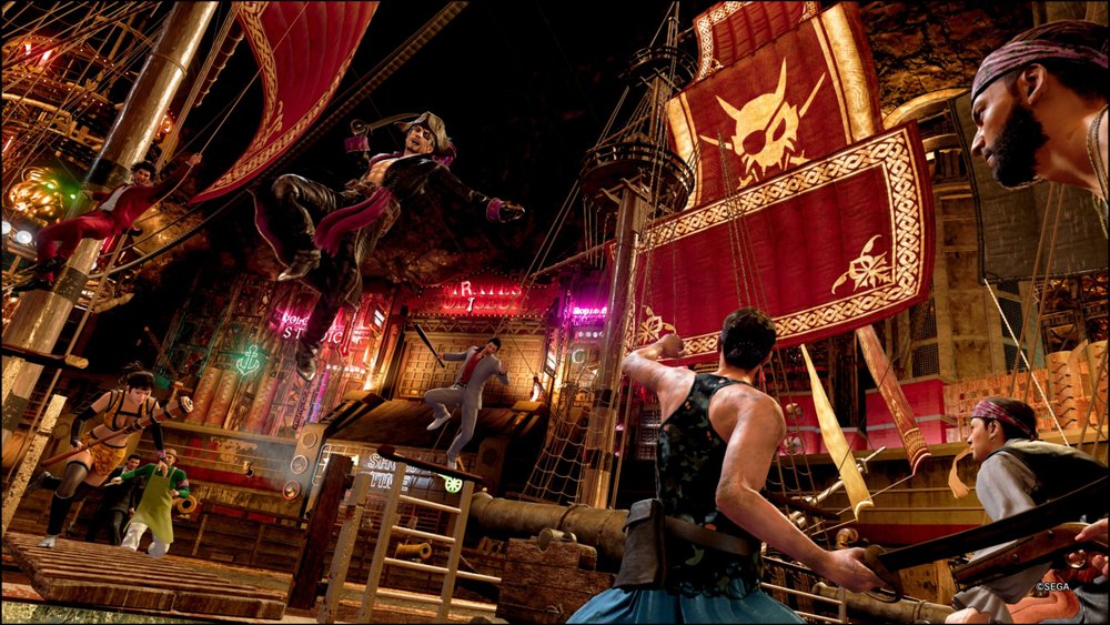 Ao acordar, Majima cai em uma confusão com piratas, mesmo sem lembrar de nada, o espirito de luta do velho Yakuza ainda está lá.